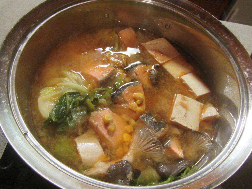夜は貸し切りのバンガローで宴会。新入会員のHさんが故郷の石狩鍋を作ってくれました。おいしかった!